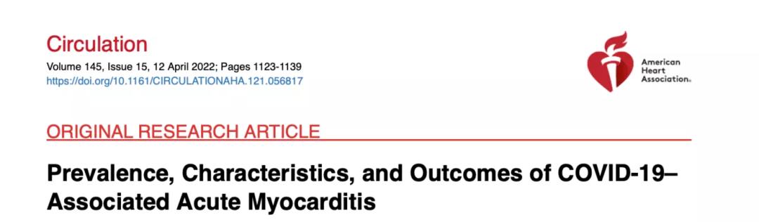 那么,在新冠患者中,急性心肌炎的发病数据到底如何?去年4月,发表在《循环》杂志的一项纳入了五万余名新冠住院患者的回顾性队列研究显示,在每1000个因新冠住院的患者中,约有2.4~4.1名患者会被诊断为急性心肌炎。